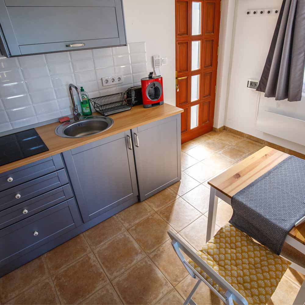 A földszinten fürdő, nappali és konyha kapott helyet, mely 2 személy számára nyújt kényelmes pihenést..